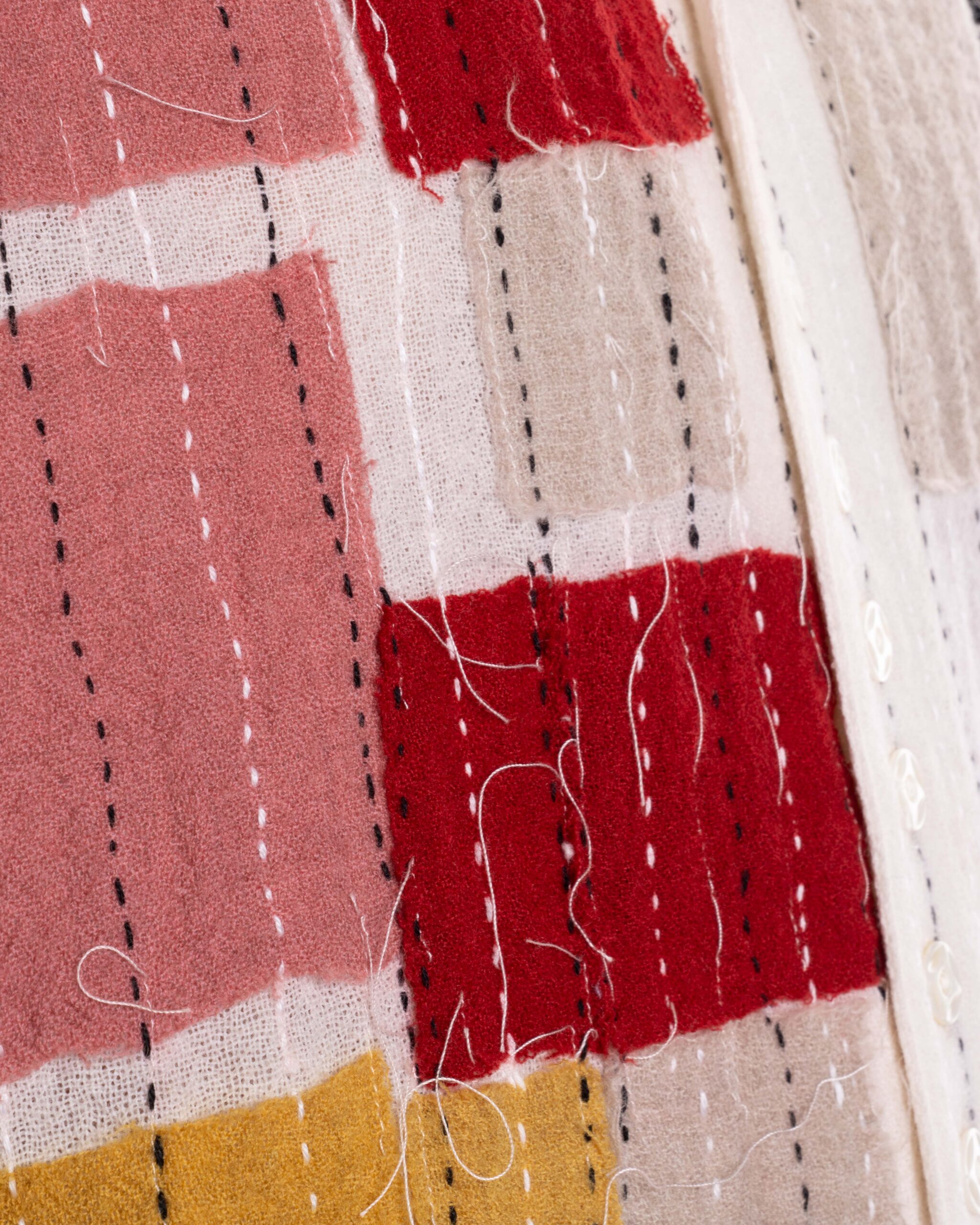 – Details: Pleated collar and cuffs, pearled button closure, embroidered technology motif at chest