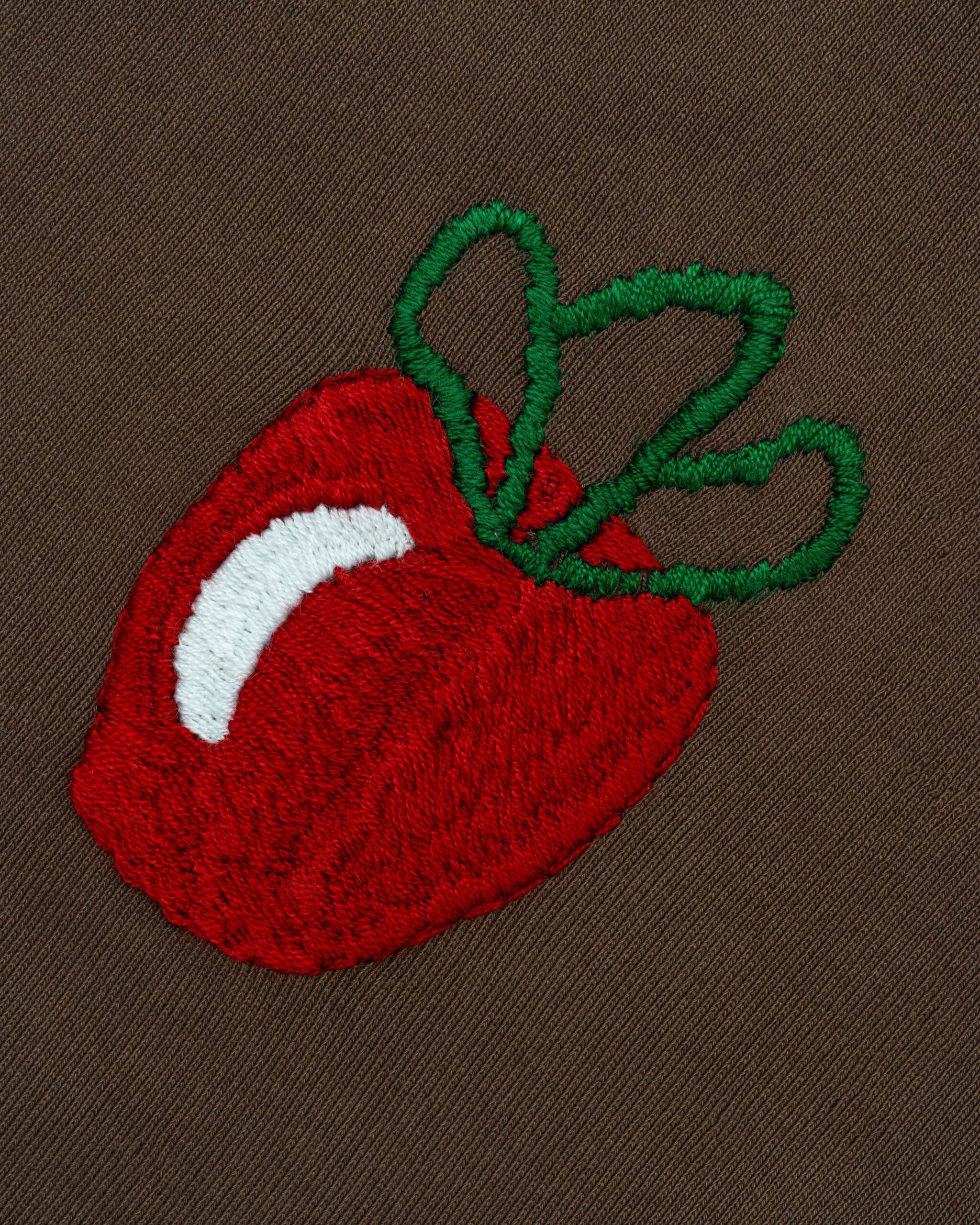 - THE FABRIC IS THICK AND STRUCTURED WITH A SOFT INTERIOR BRUSH, OFFERING WARMTH WITHOUT BULK. THE FRUIT MOTIFS BRING A PLAYFUL TEXTURE THAT CONTRASTS AGAINST THE MINIMAL FORM, MAKING THE PIECE BOTH GRAPHIC AND GROUNDED. DESIGNED FOR EVERYDAY WEAR WITH DISTINCT PERSONALITY — EXPRESSIVE, YET REFINED IN EXECUTION.