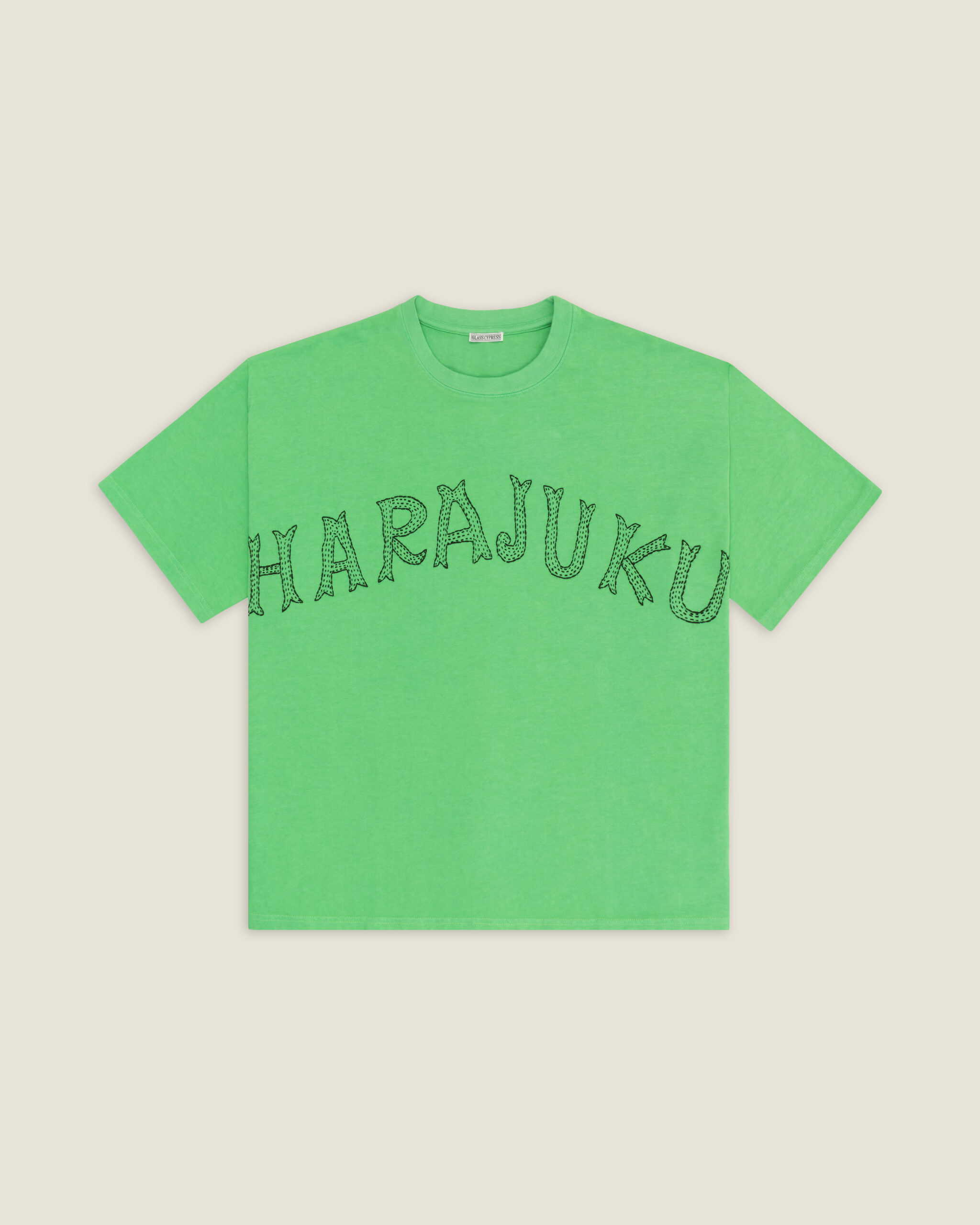 Cut in a relaxed oversized shape, this green cotton t-shirt features hand-done nakshi embroidery at the chest for a subtle touch of texture and craftsmanship. The silhouette is clean and minimal, allowing the embroidery to quietly draw focus while maintaining everyday wearability.