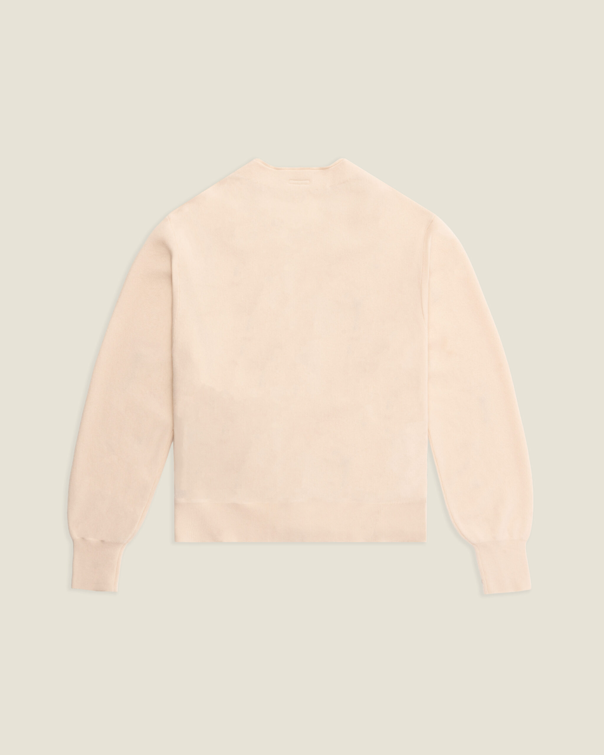 – Details: Embroidered heart balloon motifs with black thread strings, tonal buttons, ribbed hem and cuffs, lightweight knit structure
