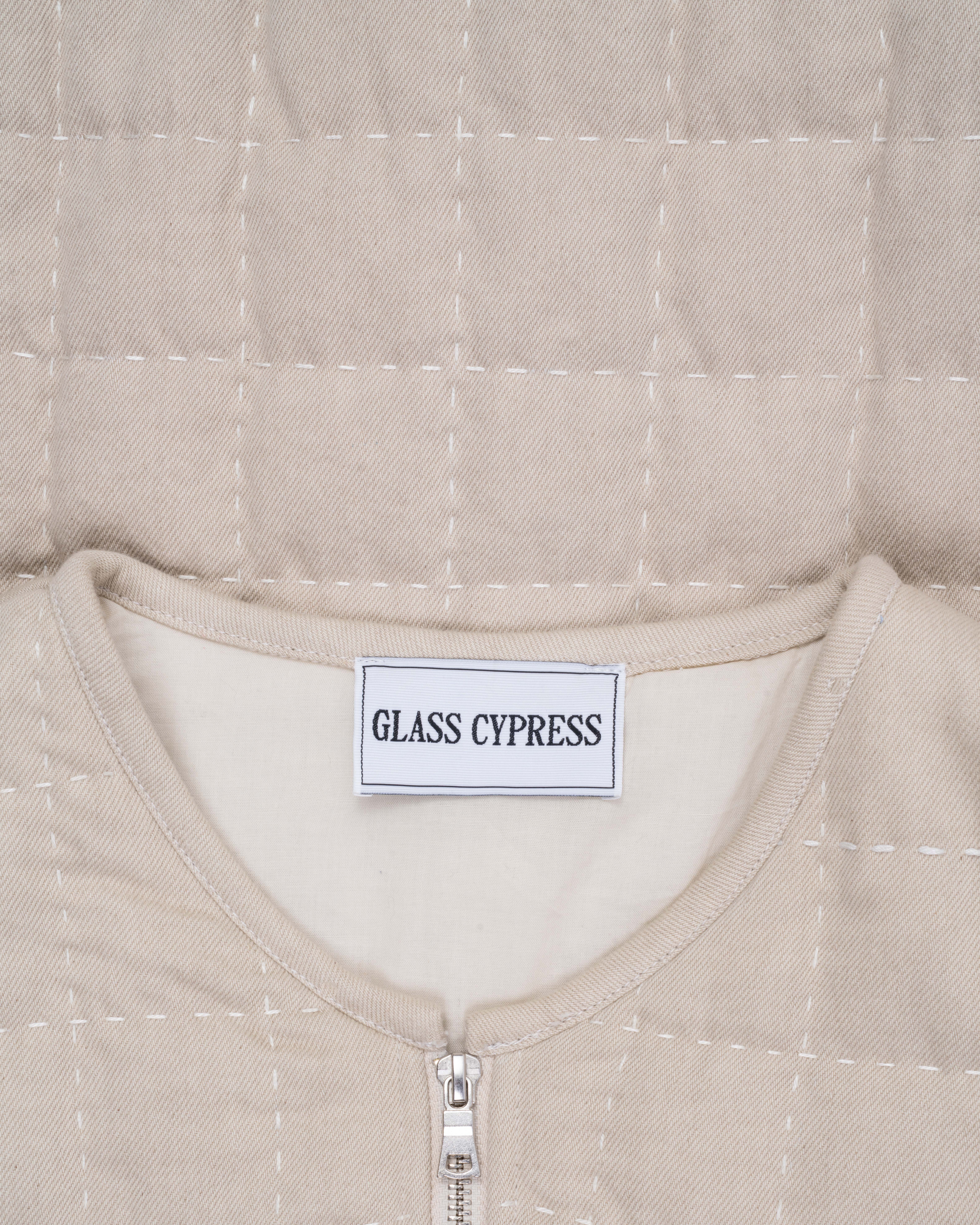 - The vertical quilt lines emphasize structure and proportion, while the neutral ivory tone highlights the construction and material detail. Balancing function and refinement, this piece combines durability with a relaxed ease, making it a versatile outer layer.
