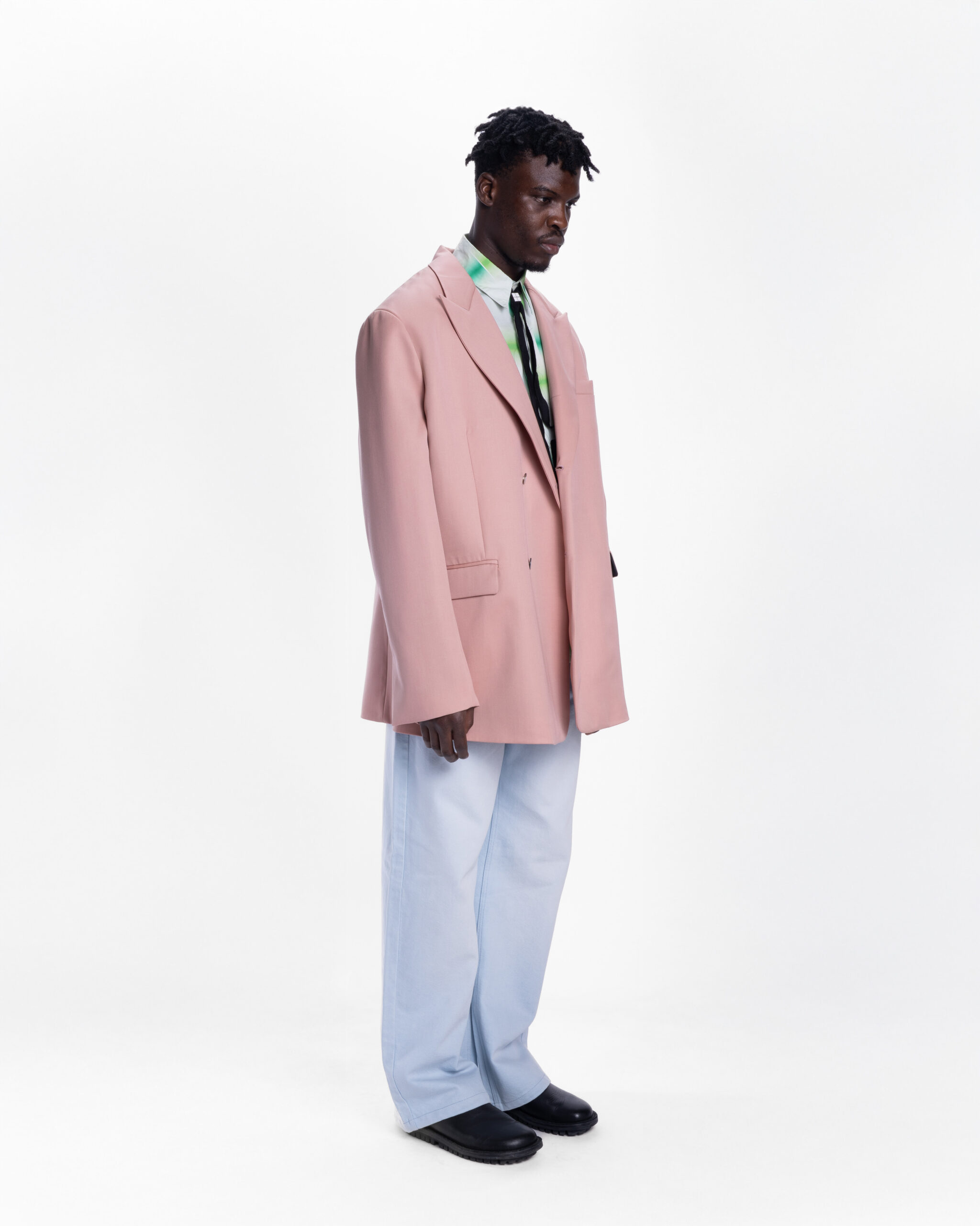 - Designed with versatility in mind, the blazer features a single-breasted closure and functional welt and flap pockets that emphasize its tailored origins. Its oversized fit allows movement while preserving a deliberate, architectural shape. This combination of softness and precision makes the Mauve Oversized Blazer a statement of modern tailoring — one that elevates wardrobe essentials with both color and proportion.